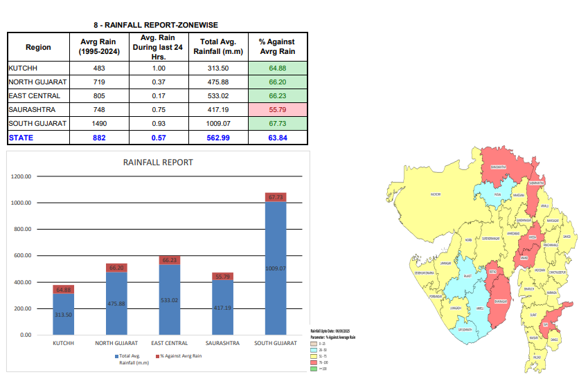 The situation is particularly worrying in districts like Gir Somnath, Rajkot, and Amreli, which have not yet received even 50% of their average seasonal rainfall, with no immediate forecast of heavy showers. Only Botad and Bhavnagar have crossed the 75% mark of their average seasonal rainfall among Saurashtra districts.