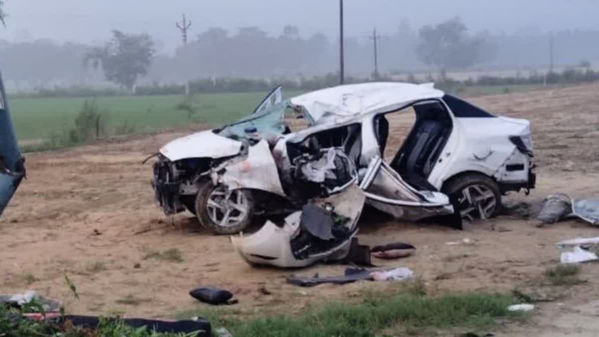 The accident took place around 3:30 pm when a Swift Dzire car collided head-on with a Tata Harrier SUV on the highway. The impact caused the Dzire to catch fire, trapping its occupants inside.